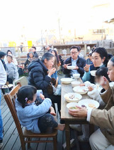 また、鎌倉で活躍している学生ボランティア団体の「ニューコロンブス」の皆さん8名も参加して、賑やかな餅つき大会になりました。 初参加ボランティアさんも実は「餅つき名人」の女性で心強かった!
